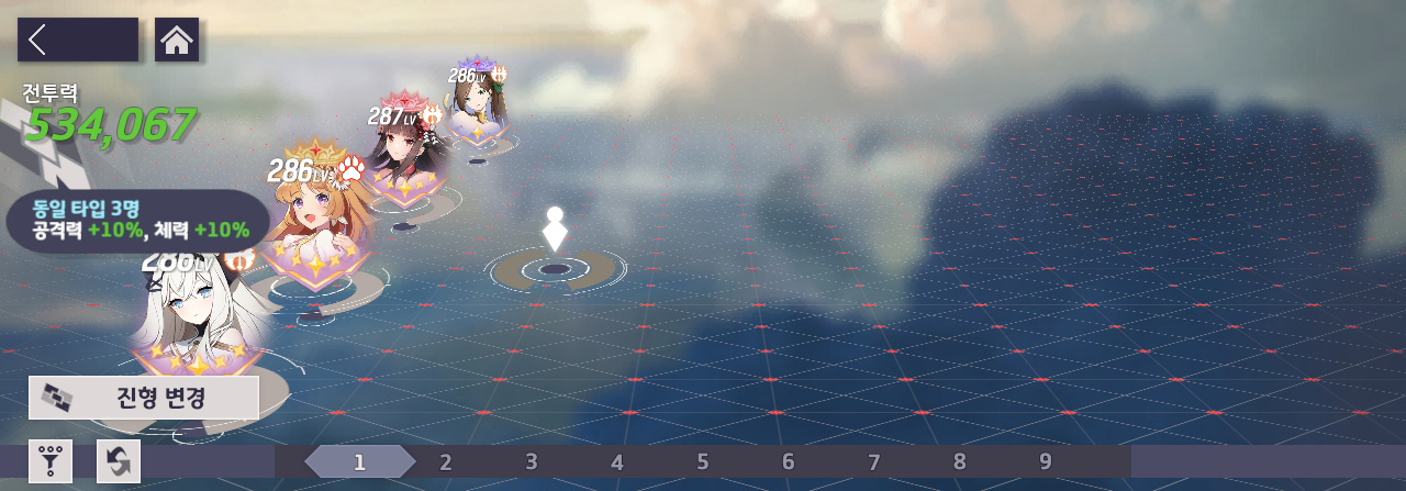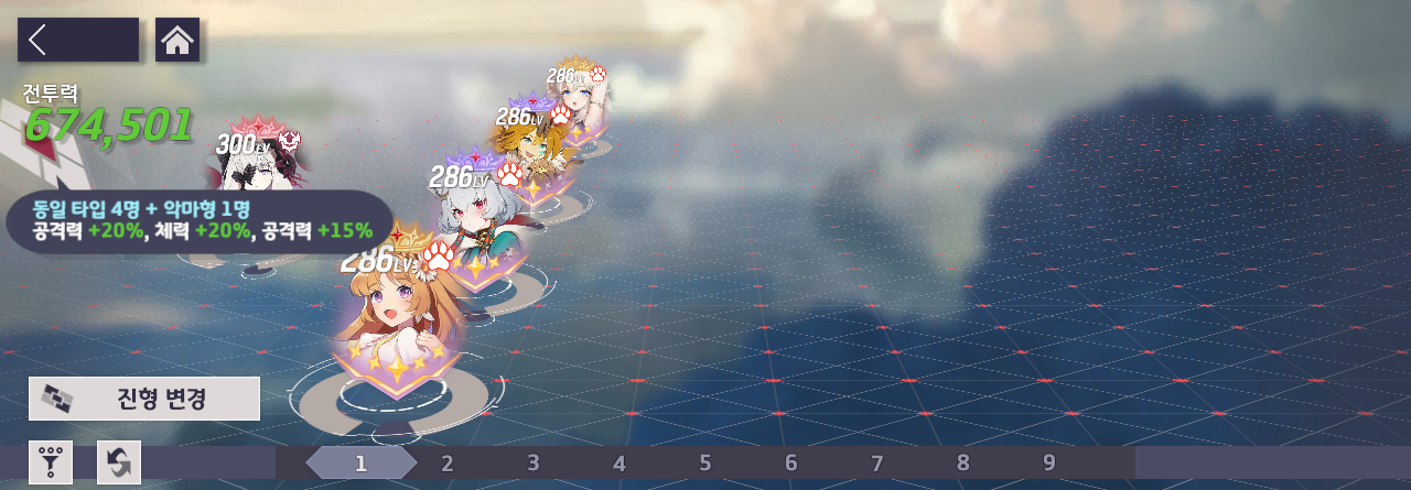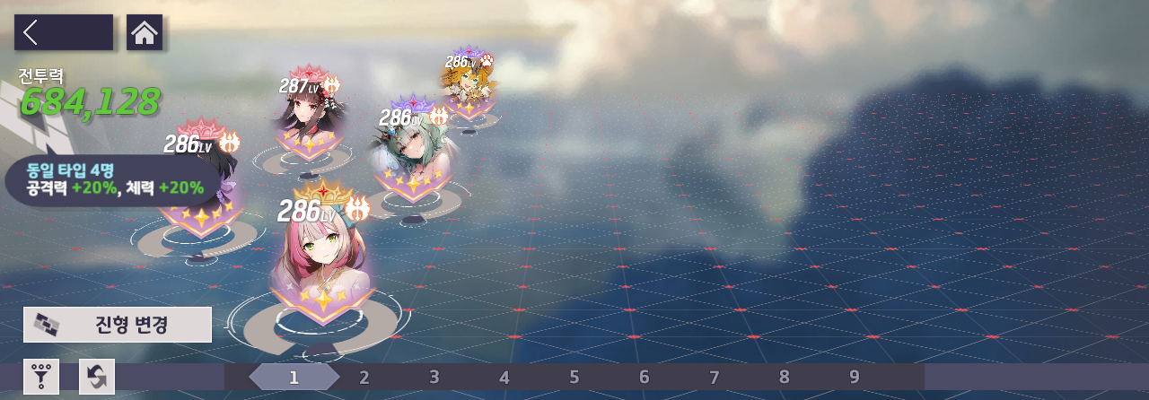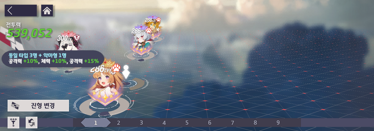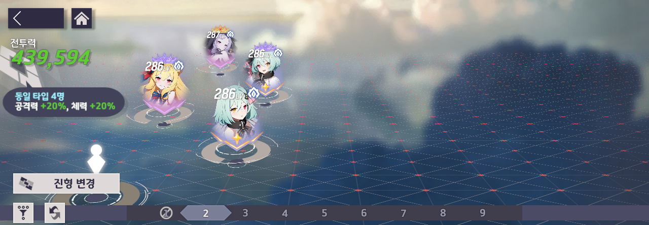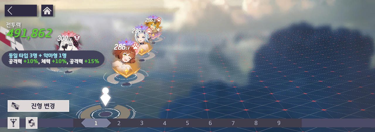 *지호 뒷1 배치라면 캐서린과 같이 앞열 서포터를 하나 더 챙겨 지호의 메인 스킬을 쓰지 않은 체