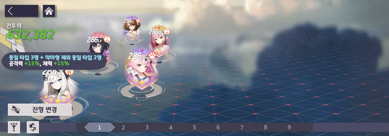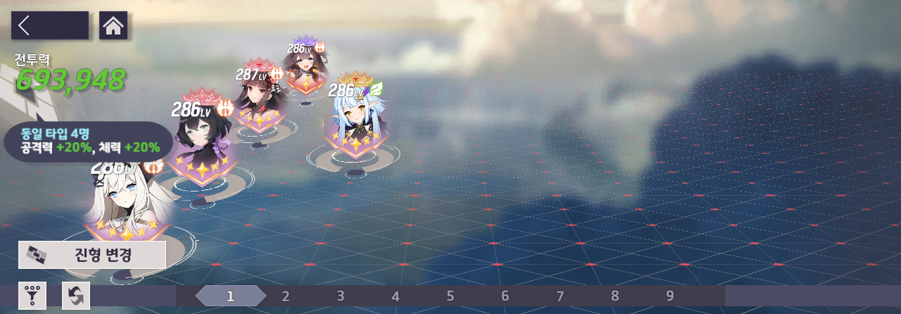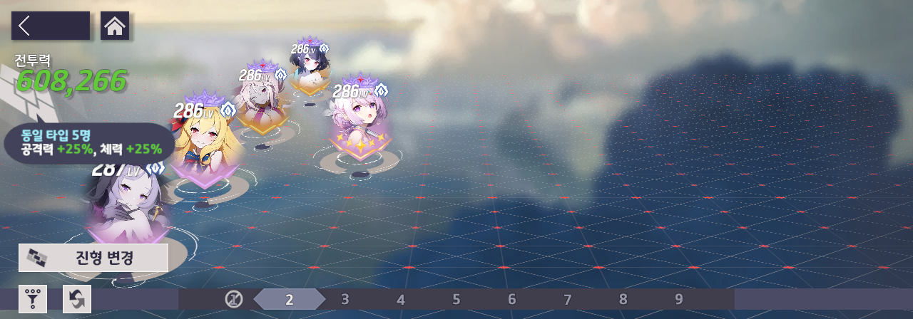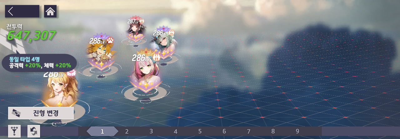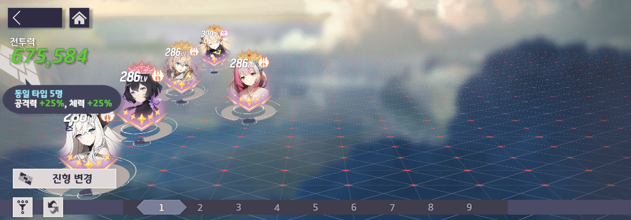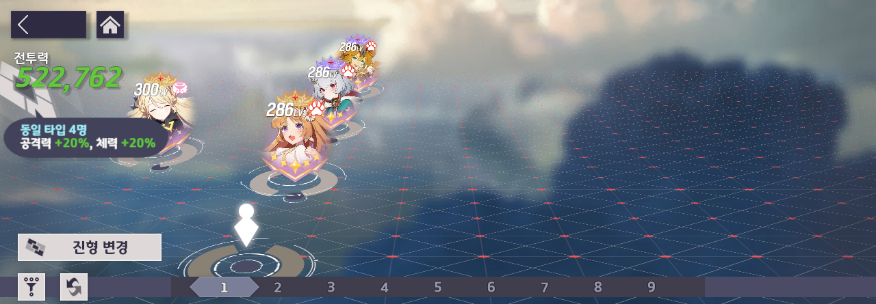 *지호 뒷1 배치라면 캐서린과 같이 앞열 서포터를 하나 더 챙겨 지호의 메인 스킬을 쓰지 않은 체
