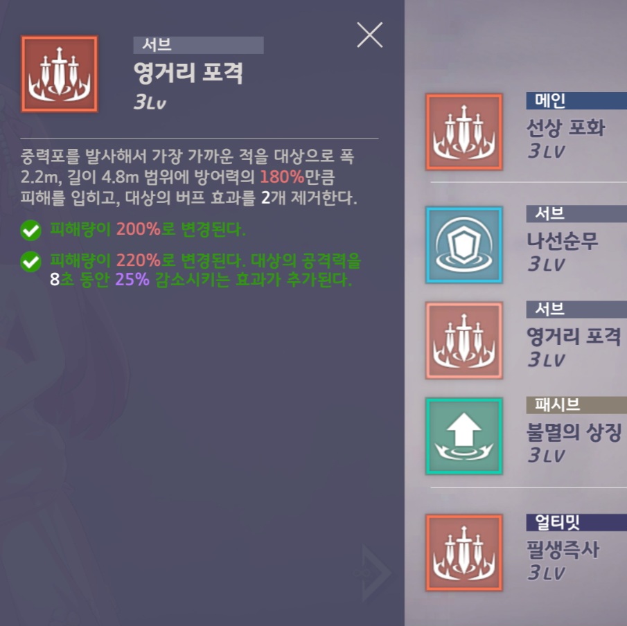 전투에서 이 스킬이 캔슬되지 않게 배치에 신경써주세요.