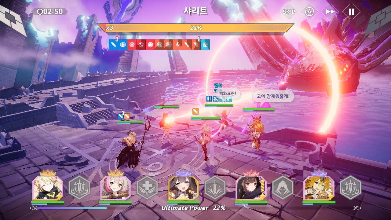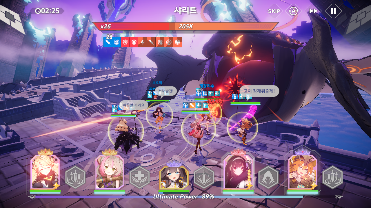 *유리아 메인 스킬에 공격력 증가 있기 때문에 4가속으로 딜러들 전에 먼저 쓰는 것도 한가지 방법