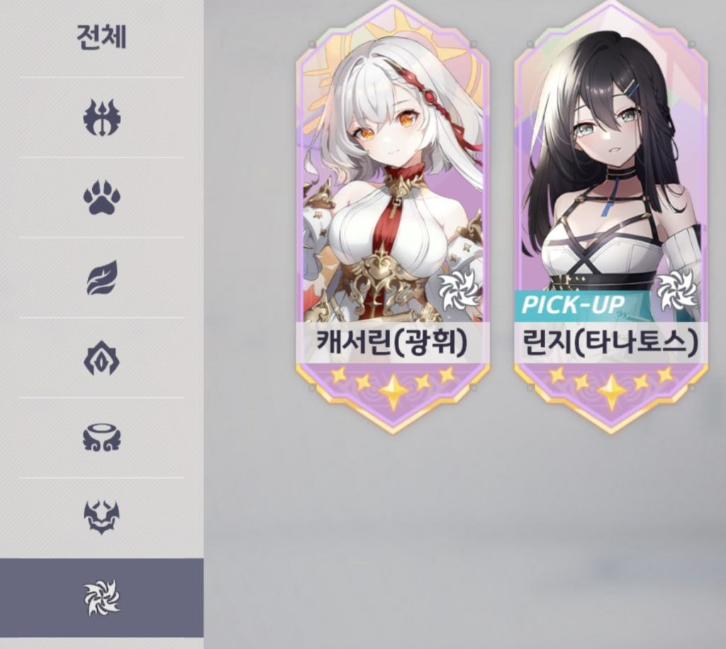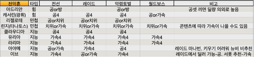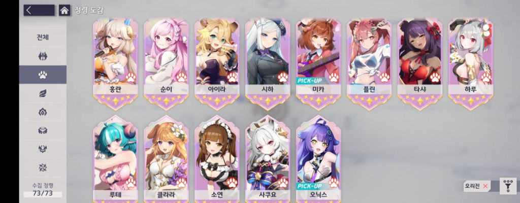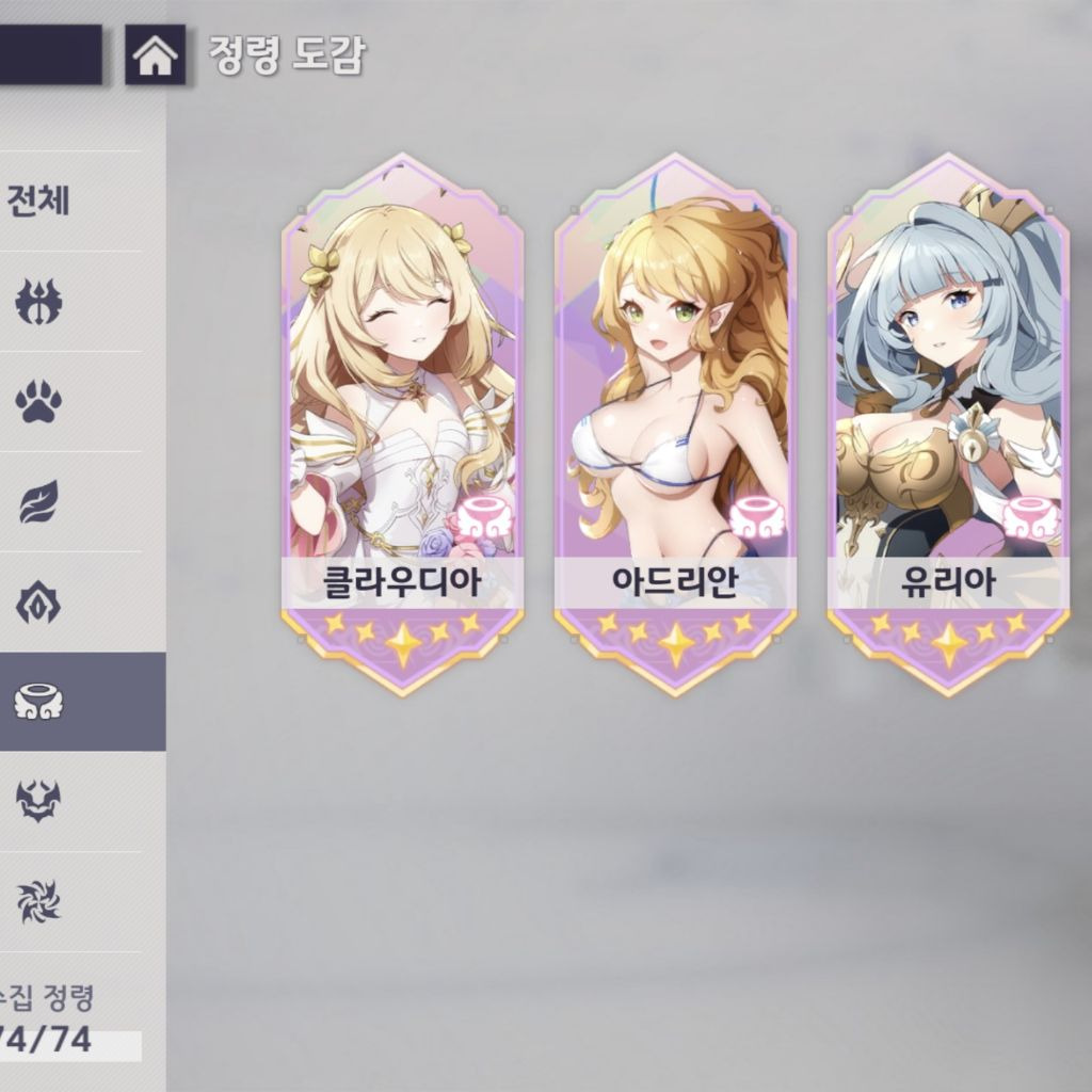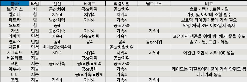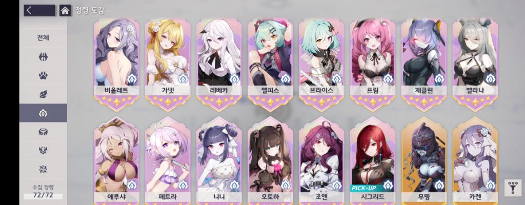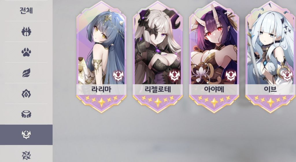 구분은 전선, 레이드, 악령토벌, 월드보스