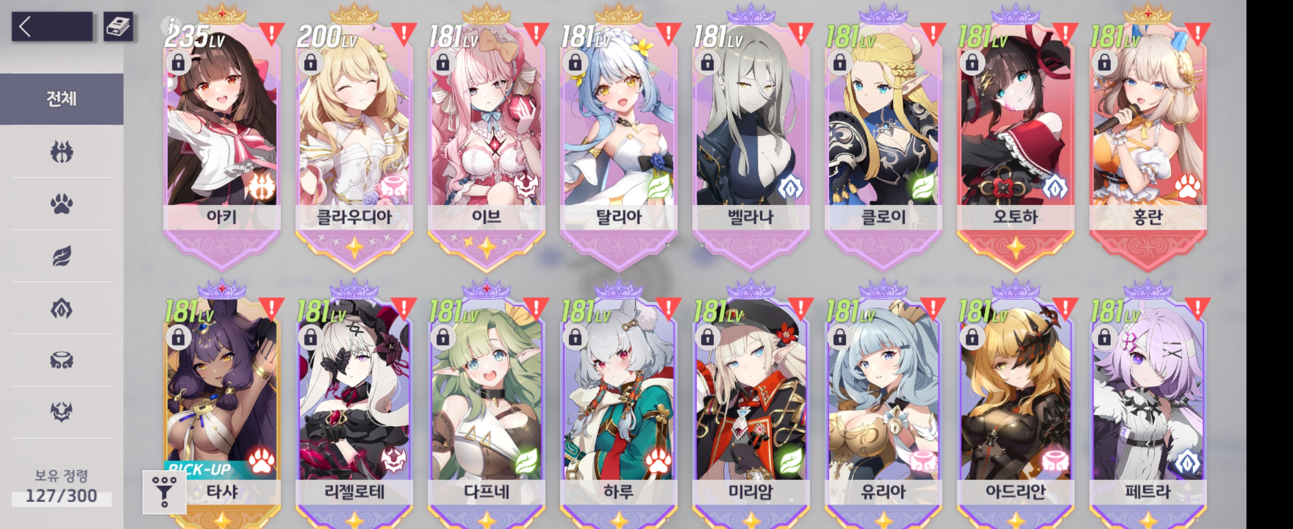 자, 얼티밋 스킬은 레이드가 아닌 이상 보통 딜러 얼티밋만 씁니다. 그렇다면 딜러가 아닌 정령은 레벨 201로 굳이 올릴 이유가 없다는 뜻이죠. 181에 마지막 서브스킬이 강화가 되니까 저는 딜러가 아닌 정령을 전부 181에 맞추었습니다. 그리고 남은 재화를 전부 아키(또는 초기화해서 클라우디아)에게 몰빵 했죠.