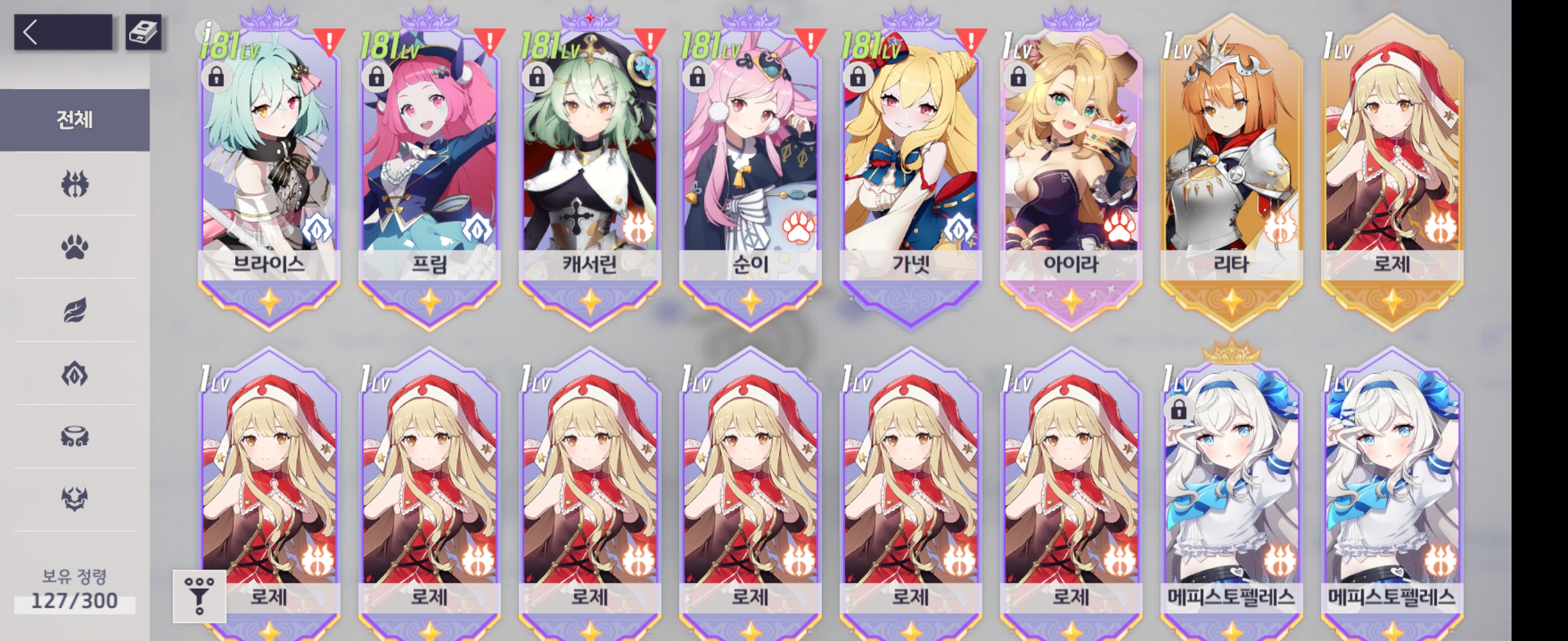 서폿: 유리아, 탈리아, 이브, 비비안(제가 유일하게 못 가진 정령입니다. 천사, 악마 다 있는데....)