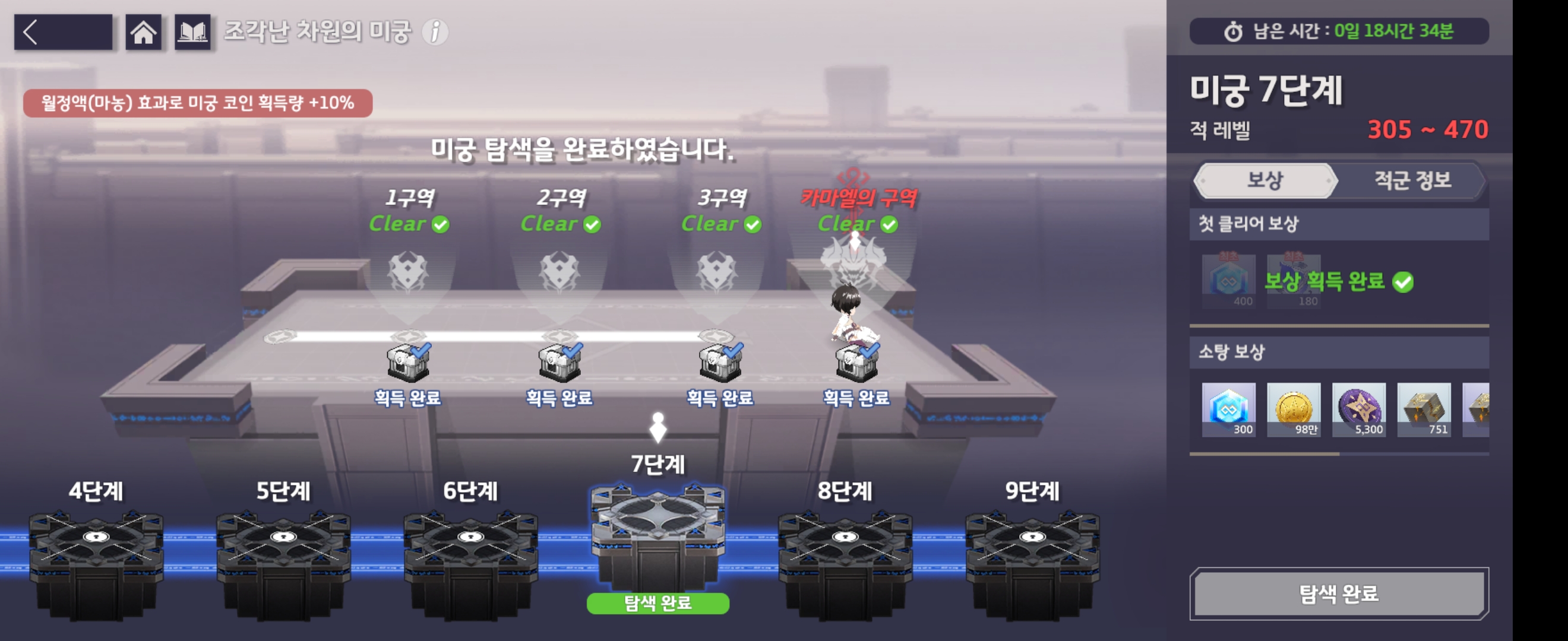최근 레이드는 1.7억, 연합작전은 84만, 게이트는 위 사진대로, 미궁은 7단계 소탕합니다.