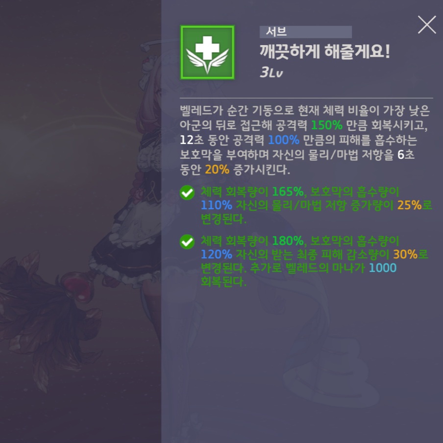추가로 벨레드의 버프 이펙트가 굉장히 아름답습니다.