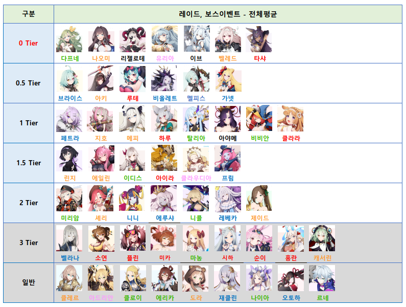 2) 타샤 : 4근접정령이 강제되지만 루테+타샤가 현재 레이드 최고의 딜을 뽑고 전선과 아레나에선 견제가 좋습니다.