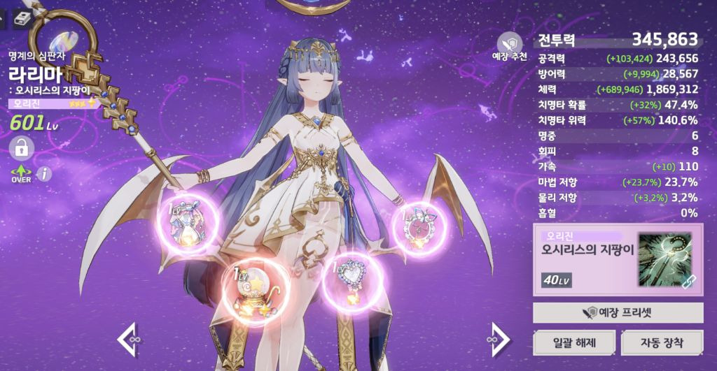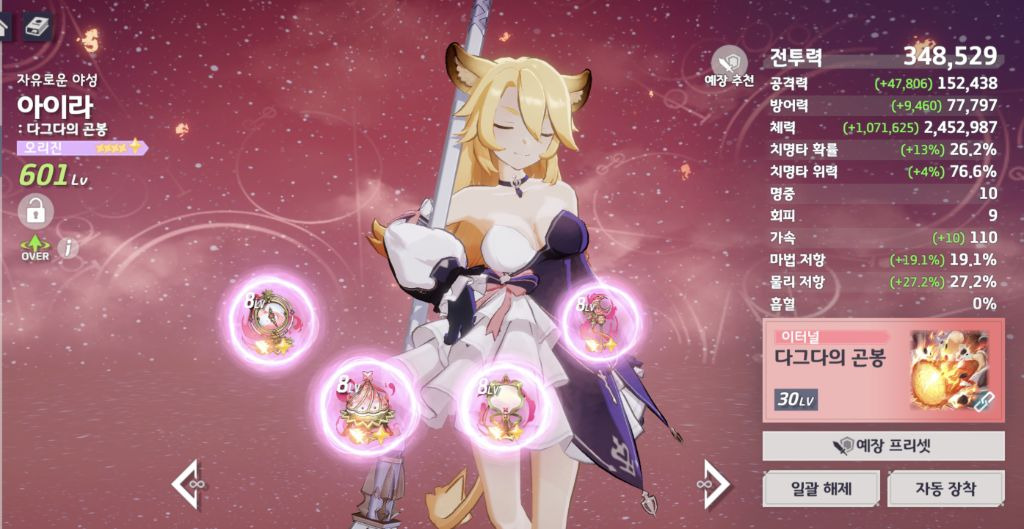 라리마는 자신이 직접 딜을 넣는게 아닌 선고 디버프로 딜을 넣는다. 그래서 자신의 공격력은 별로 의미가 없다.