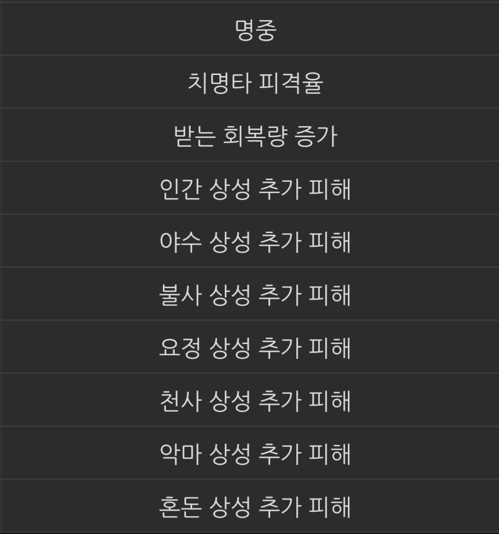 공 체는 빼고 물마, 치명 저항이나 방어를 챙기자.