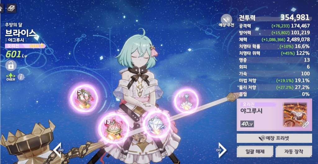 단독일때는 확정 치명타 피해를 주지만, 브라이스와 함께 사용할때는 이 효과가 사라져서 부족한 치명타 확률을 잠재능력으로 채워주는 것도 좋은 방법이다.