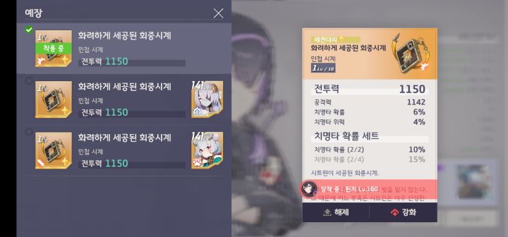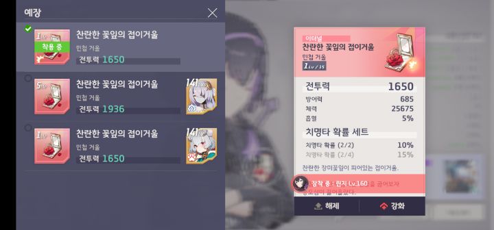 예장 세트를 얻게 되면 같은 등급만 적용이된다고
