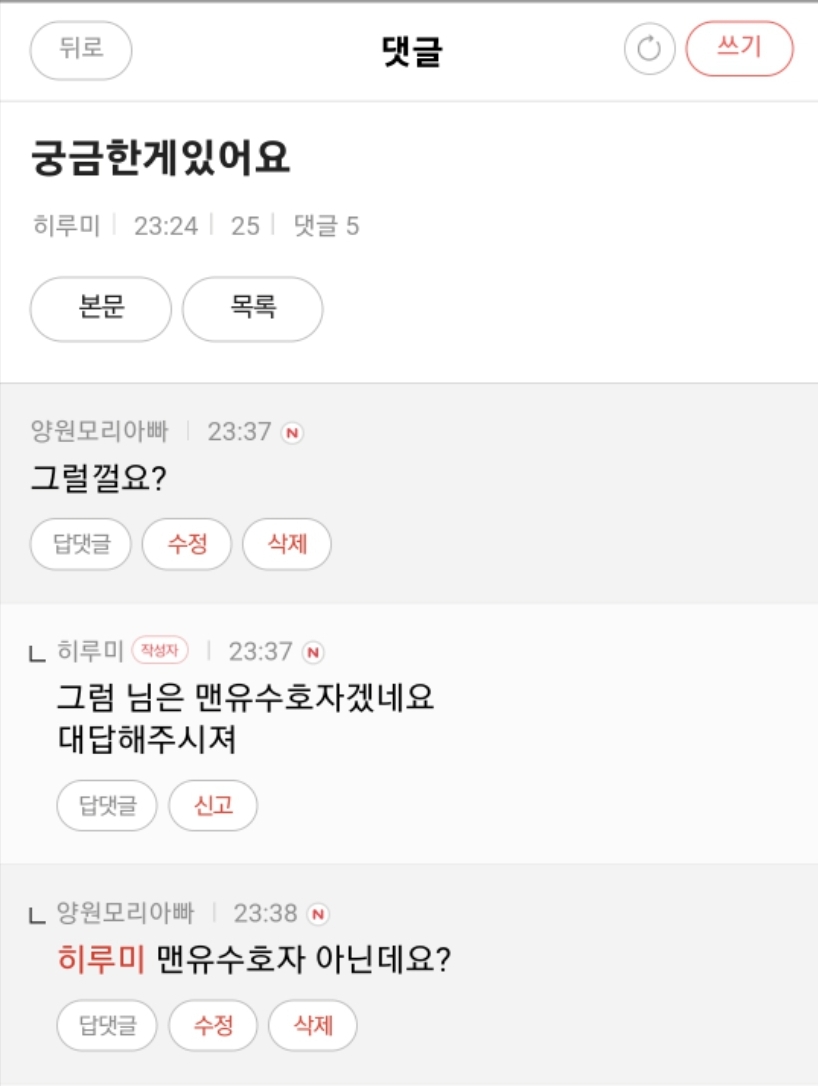 히루미란 사람이 게임에 대해 궁금한걸 물어보길래 그냥 간단히 그럴껄요라고 대답했는데 느닷없이 저런 댓글을 달더군요..? 그리고 저글에서 저한테 욕설을 하고 갑자기 글을 삭제하더니 튑니다.