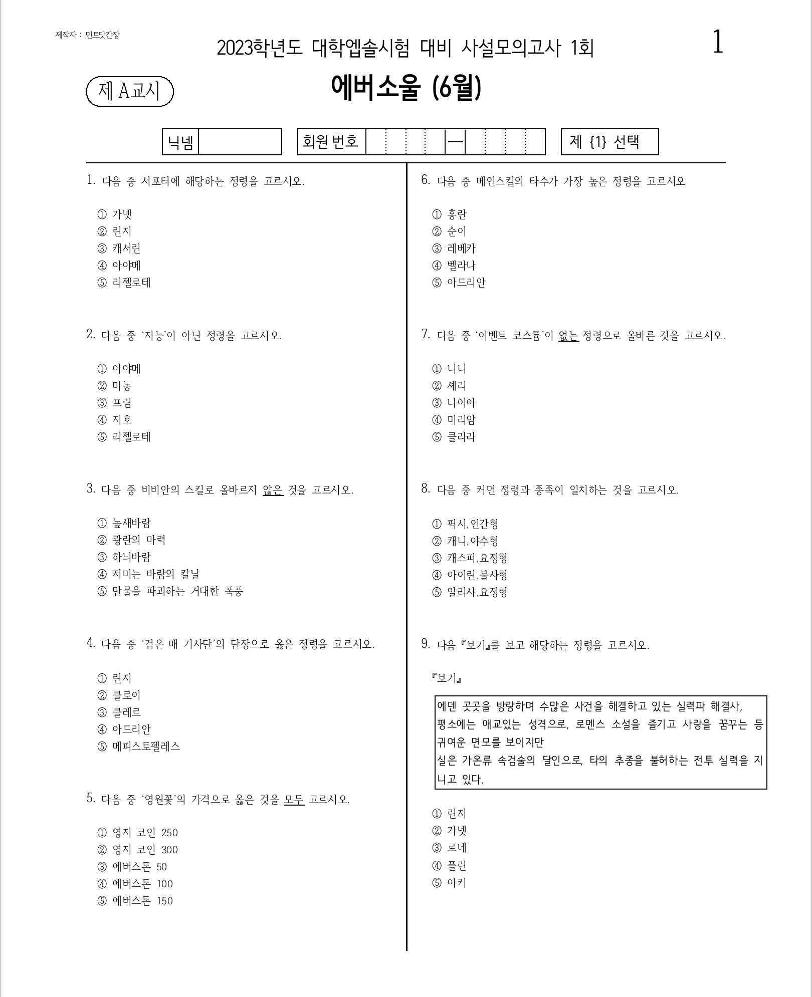 답은 해설까지 준비중이기 때문에 완성하는데로 올리겠습니다!