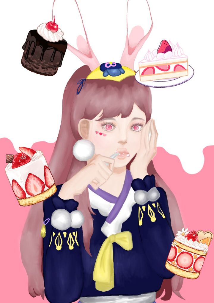 발렌타인데이 기념으로 달달한 케이크를 먹는 순이