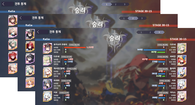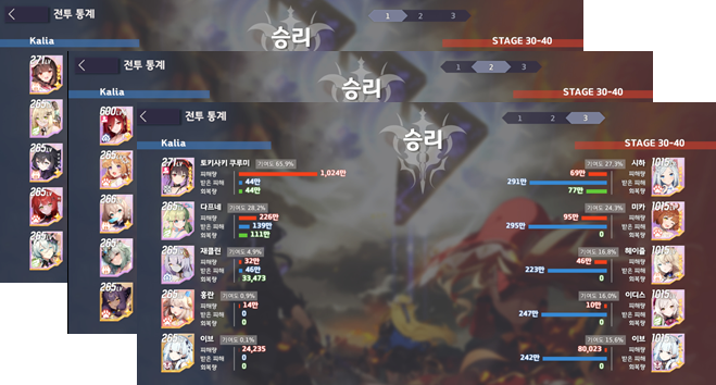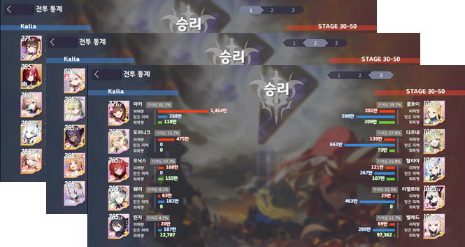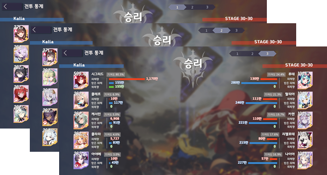 조합 뿐만 아니라 진형도 상당히 중요하기 때문에 캐릭터만 저렇게 넣는다고 안깨질 수도 있겠지만, 일단 참고용만으로 들고왔음