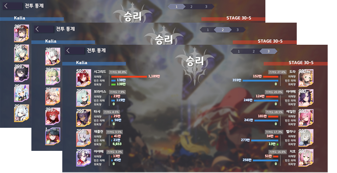 일단 여기서도 각린지, 시그리드가 특히 잘밀어줌(얘네만으로도 깰 수 있음) = 내 주력 캐릭터들 사용 안해서 다른 라인 미는데 편안