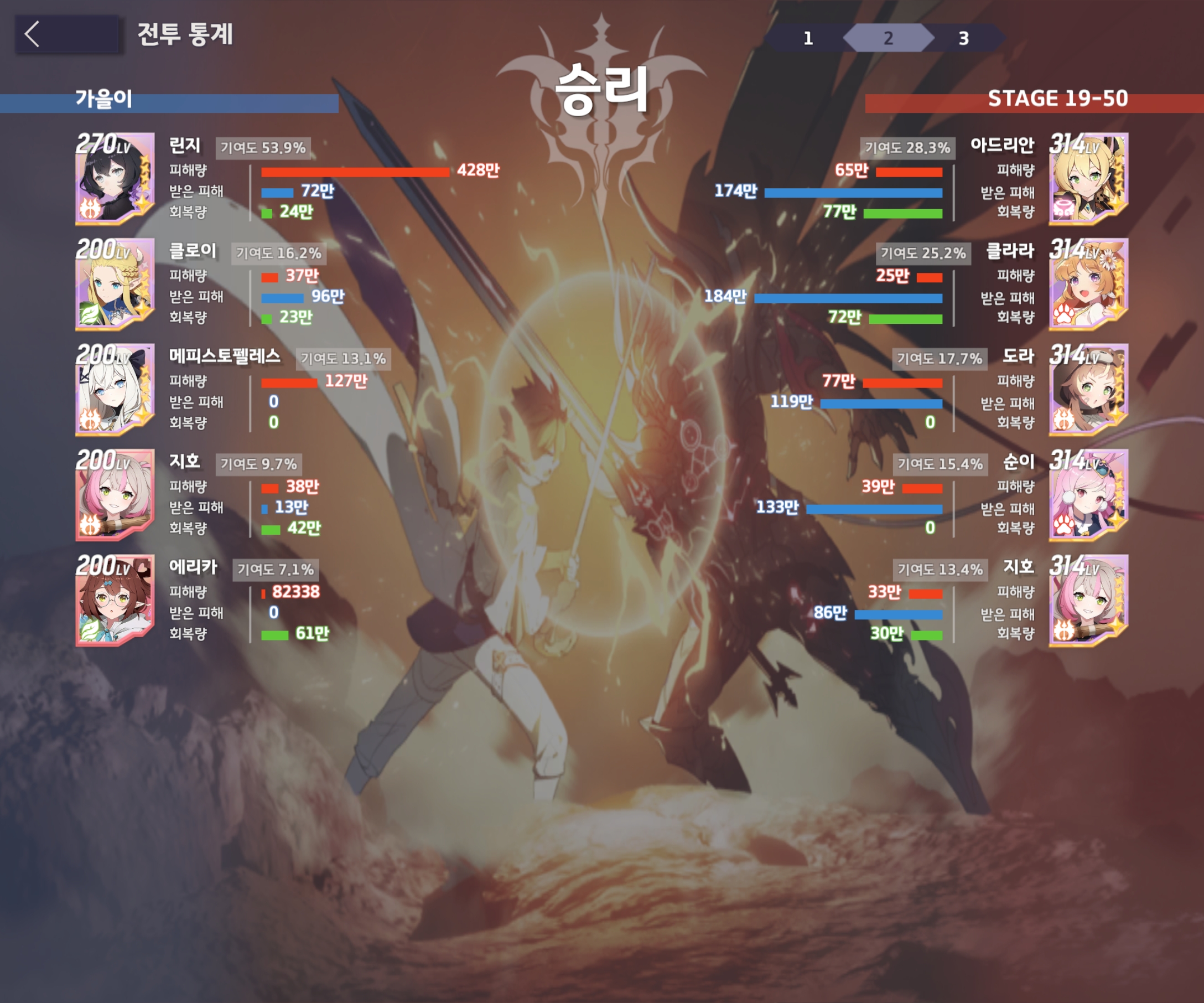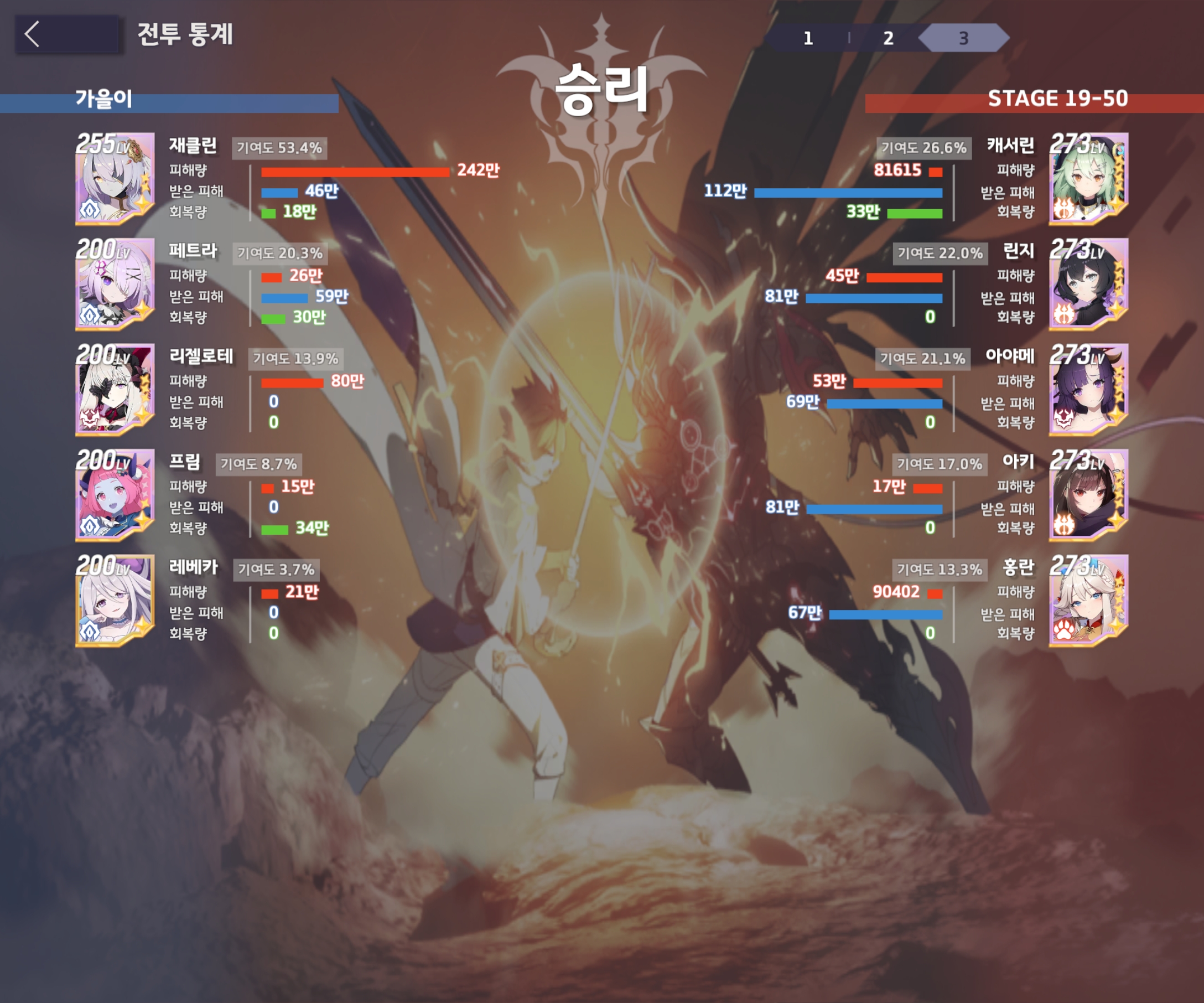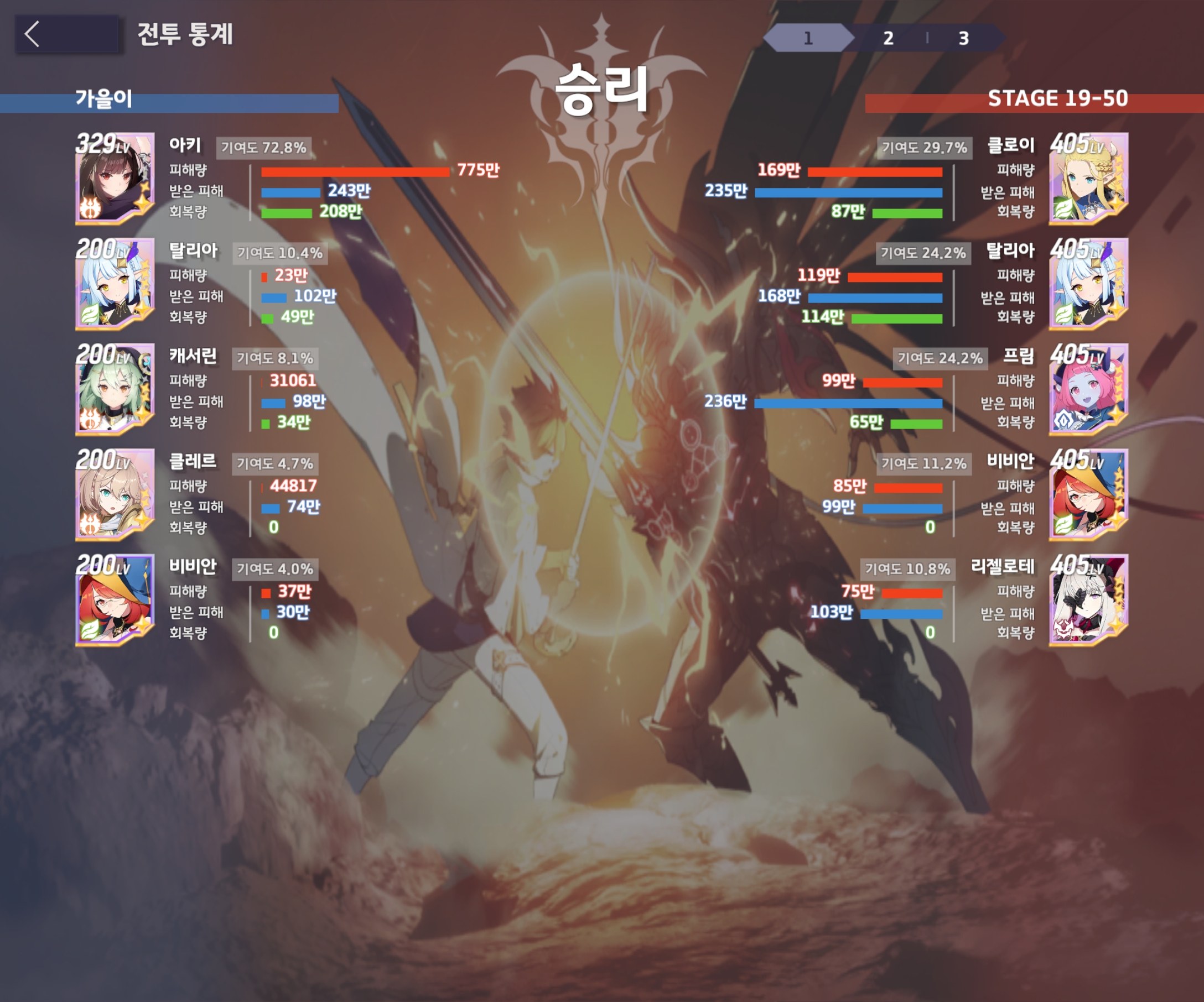 뒷열 4명이 캐서린 보호 1번 받으면서 마나모으고 아키로 리젤로테 비비안 프림 탈리아 순으로 순살시킬시 클리어.