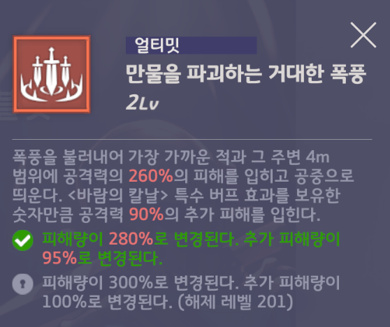 얼티밋 스킬이 <바람칼날>2스택 부터 다른 딜러들의 딜량을