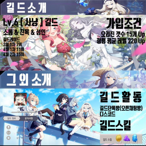 💛 저희 길드를 조금 소개하자면 조금 자유로운 길드입니다자유게이트 및 전선은 너무 뒤쳐지지만 않으면 터치를 안하는 길드입니다 게다가 막히는 곳이 있으면 질문을 하시면 도움도 드리고 고스펙 정령도 대여해주는 곳입니다. 또한 서로 즐겁게 채팅도 나누시고 길드레이드가 나오면 서로 공략법도 알려주고 길드레이드 영상도 올려주면서 자세한 설명도 해줍니다! 일상대화도 하며 재미있게 게임하는 곳이에요 스트레스 안받으시면서 게임하기 아주 좋습니다!