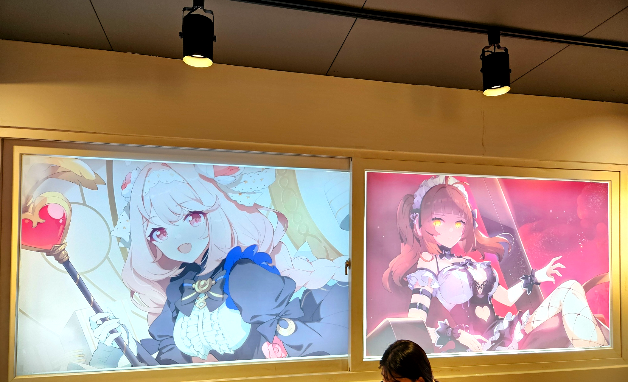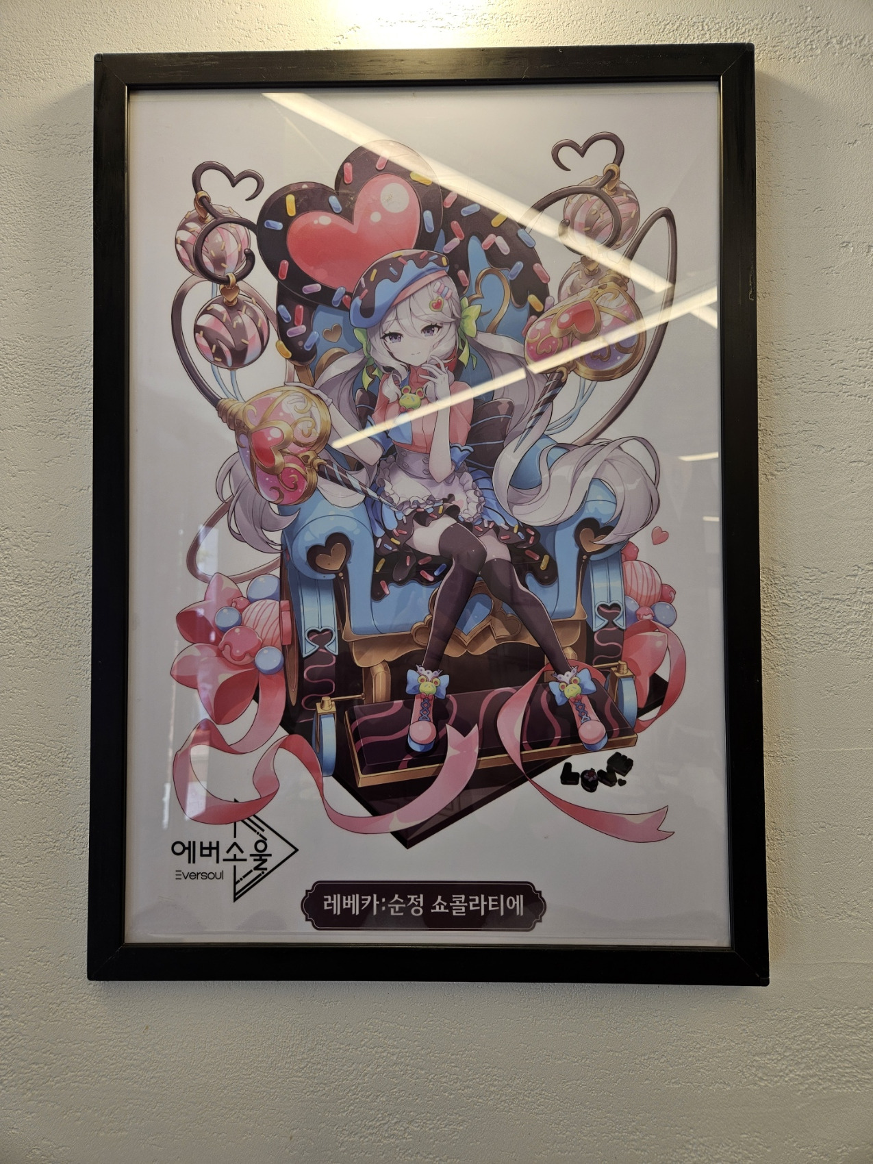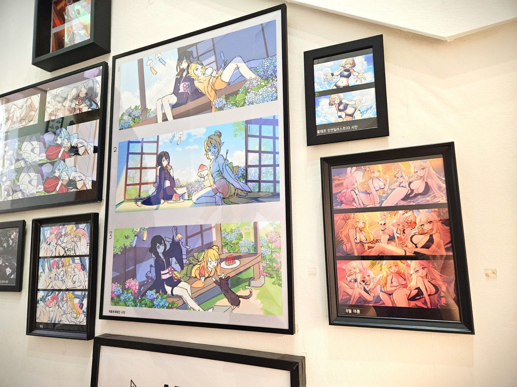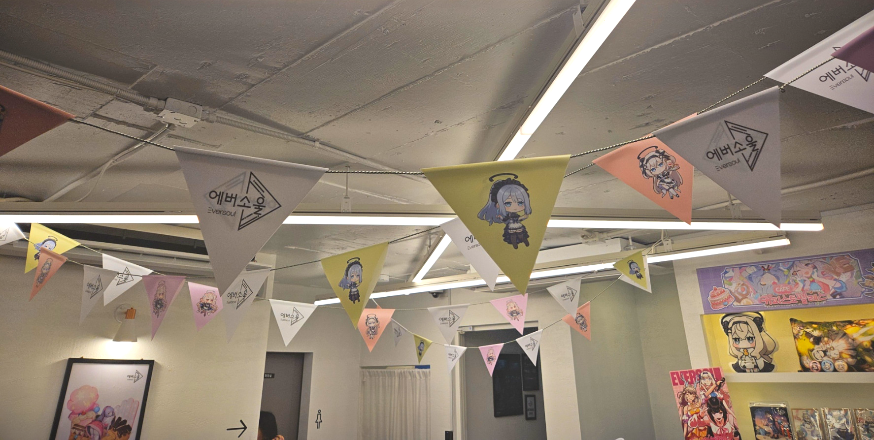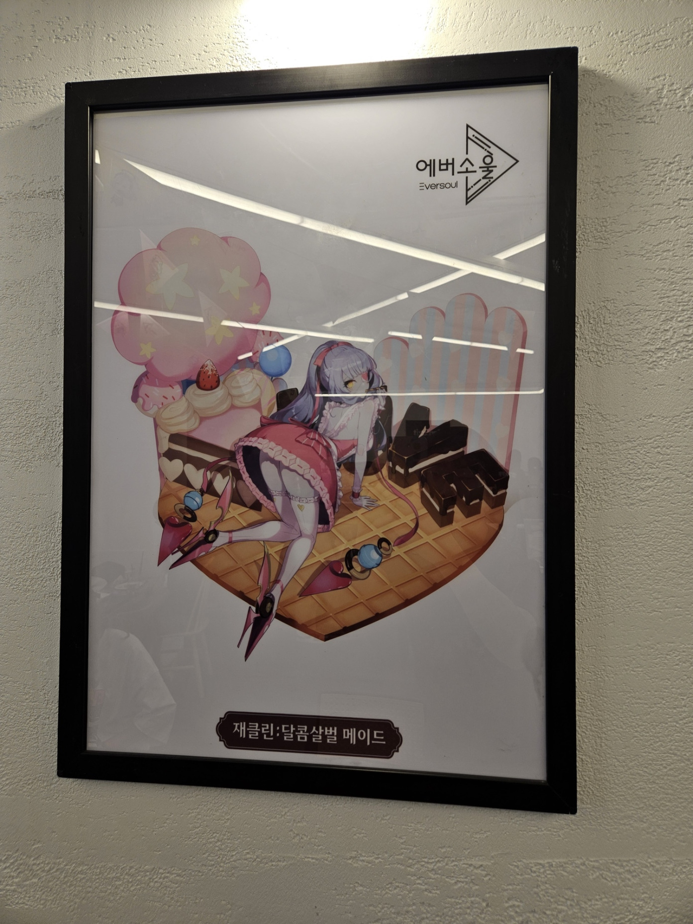 2층으로 올라가는 계단 벽면에는 여러가지 에버소울 관련 디자인 시안이 걸려져 있었습니다.