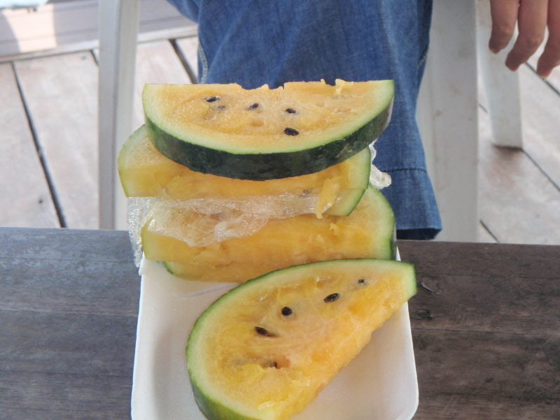노란 것, 겉은 노랗고 속은 붉은 것, 겉이 짙은 녹색이라 검은 수박(흑수박)이라고