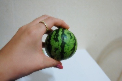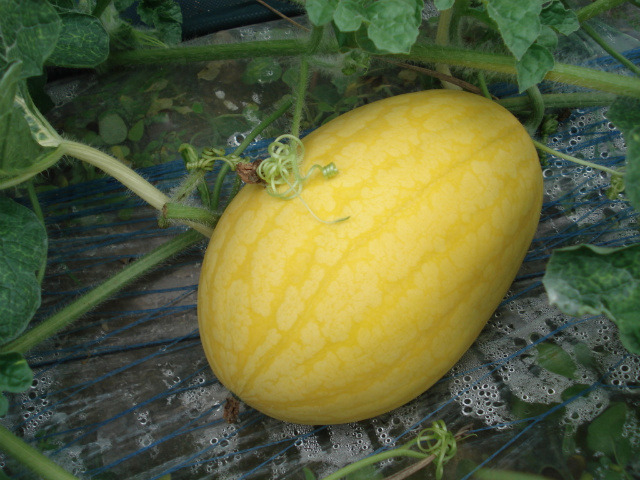 럭비공 모양의 멜론 정도의 크기로 당도가 일반수박보다 높고 껍질이 얇아서