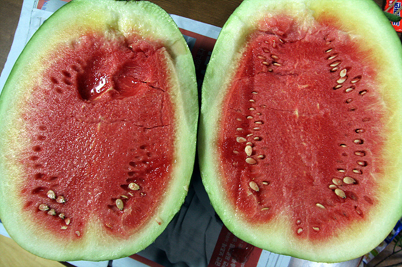 수박은 재배하시는 분들이 꾸준히 품종개량을 해서 일반수박, 겉은 녹색인데 속은