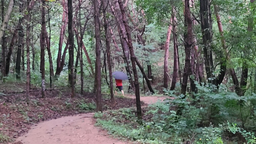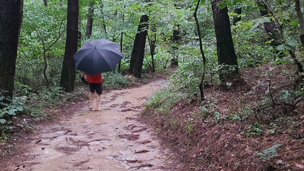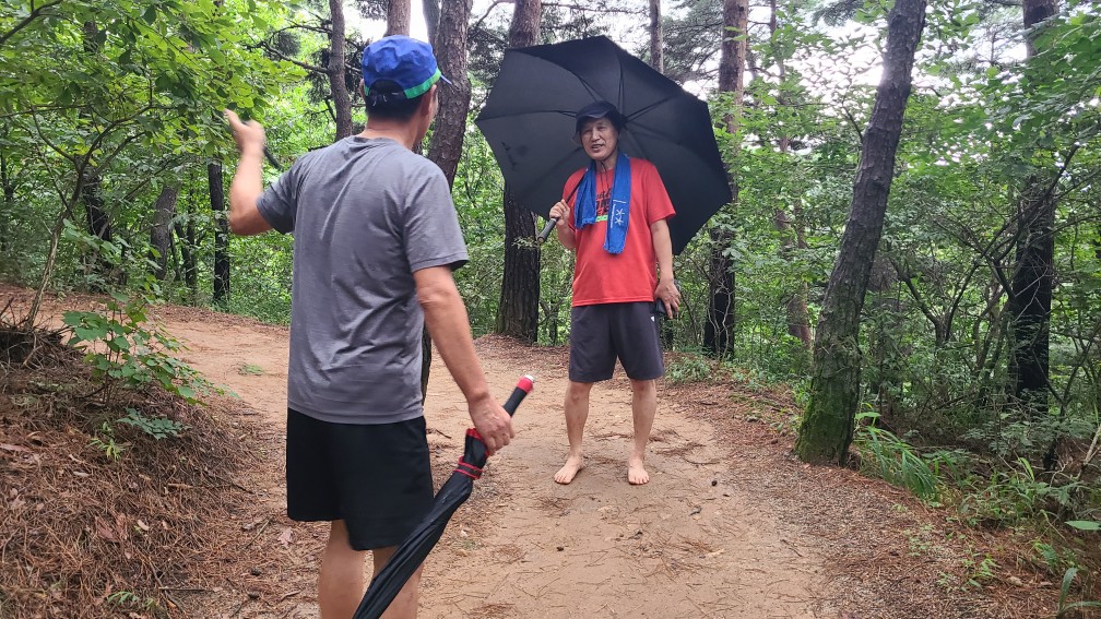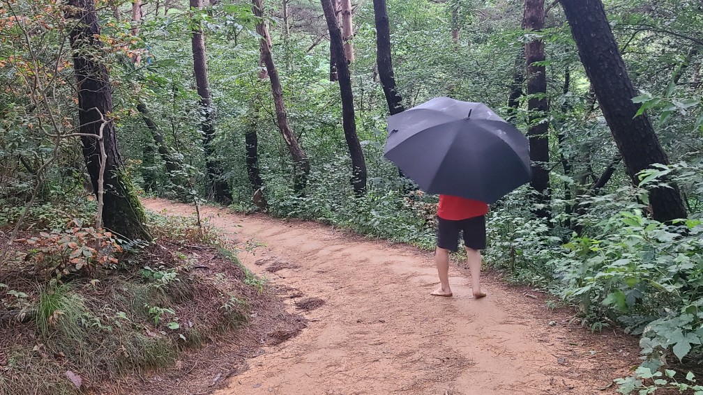 비는 그리 많이 오지는 않지만 옷은 다 젖을 정도로 내린다.