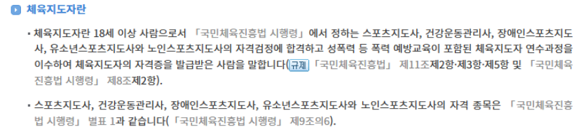 체육시설 설치ㆍ운영 > 체육시설업 운영 > 체육지도자 배치 > 체육지도자의 배치 (본문) | 찾기쉬운 생활법령정보 (easylaw.go.kr)
