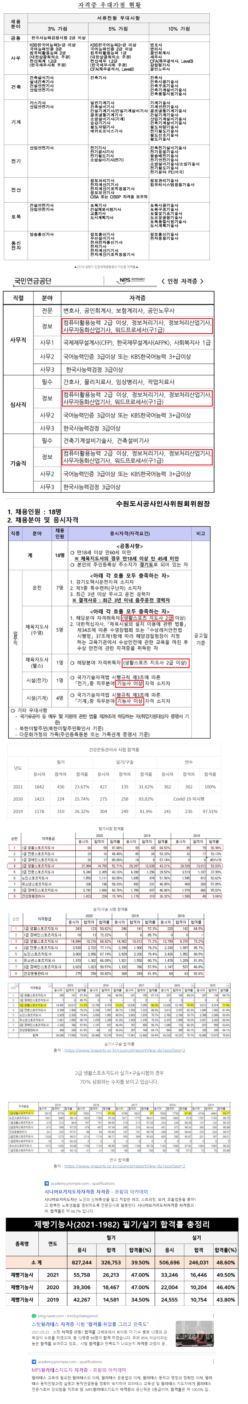 ■각종자격증 합격률(합격자수는 비인기종목과 관련있어 합격자수가 중요한게 아니라 합격률%과 종목별 가산점표(공무원,대기업,공기업)를 참고함.