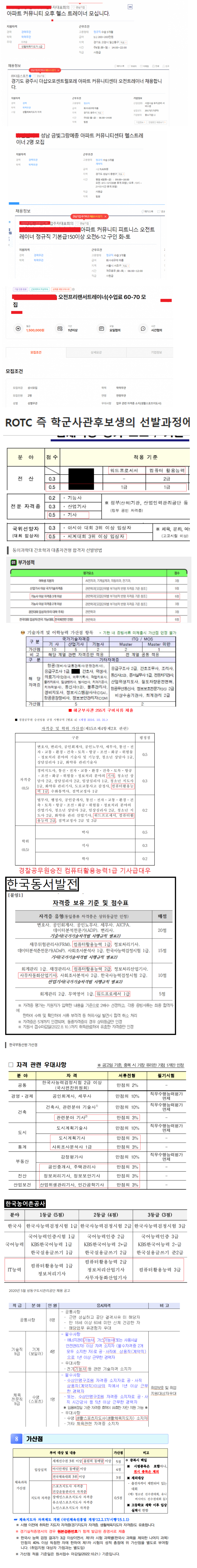 대기업, 공기업은 컴퓨터활용능력1급(기사급) 이상 자격증아니면 쳐다도 보기 힘든 다는 것을 다들 아실 것이며 심하면 쌍기사까지 나오는 곳 이다. 대기업 생산직 마저 기사급 자격증 등 5개이상 다수자격증 가진 자들이 즐비하다. 즉, 강남구커뮤니티센터 수주경쟁에서 이기려면 컴퓨터활용능력1급 정도되는 사람이 팀장,과장,대리급 중에 한명정도는 껴있는 게 유리하단 것이다.