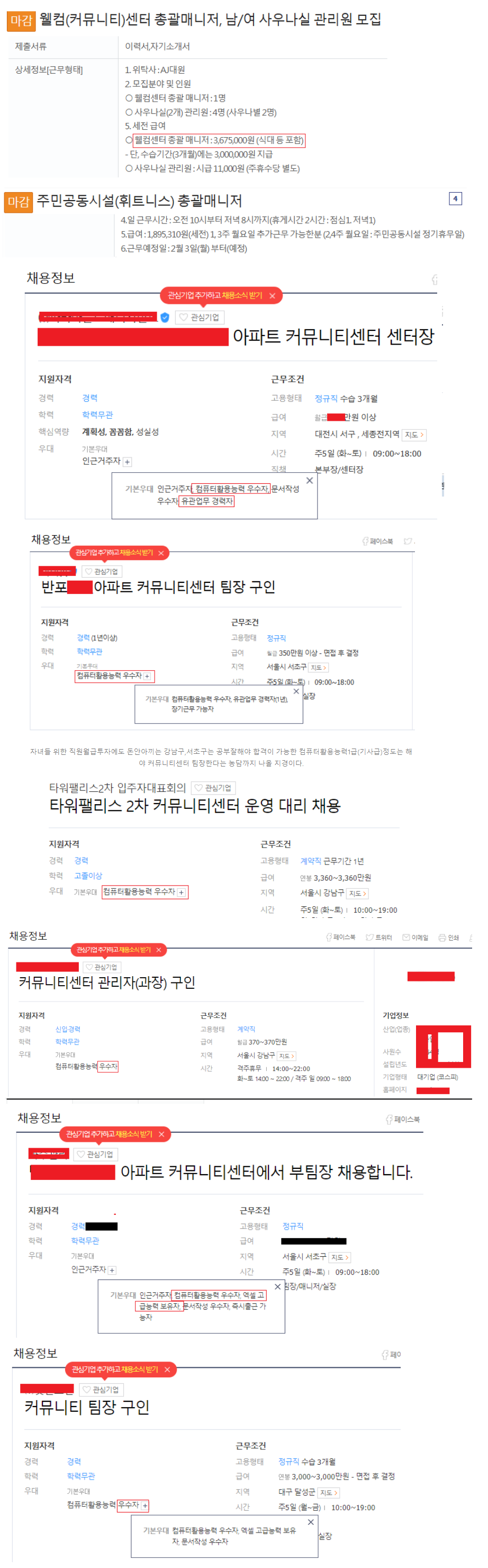 ■아파트 커뮤니티센터 관리회사 목록(아래글 읽다 보면 리스트 나옴)