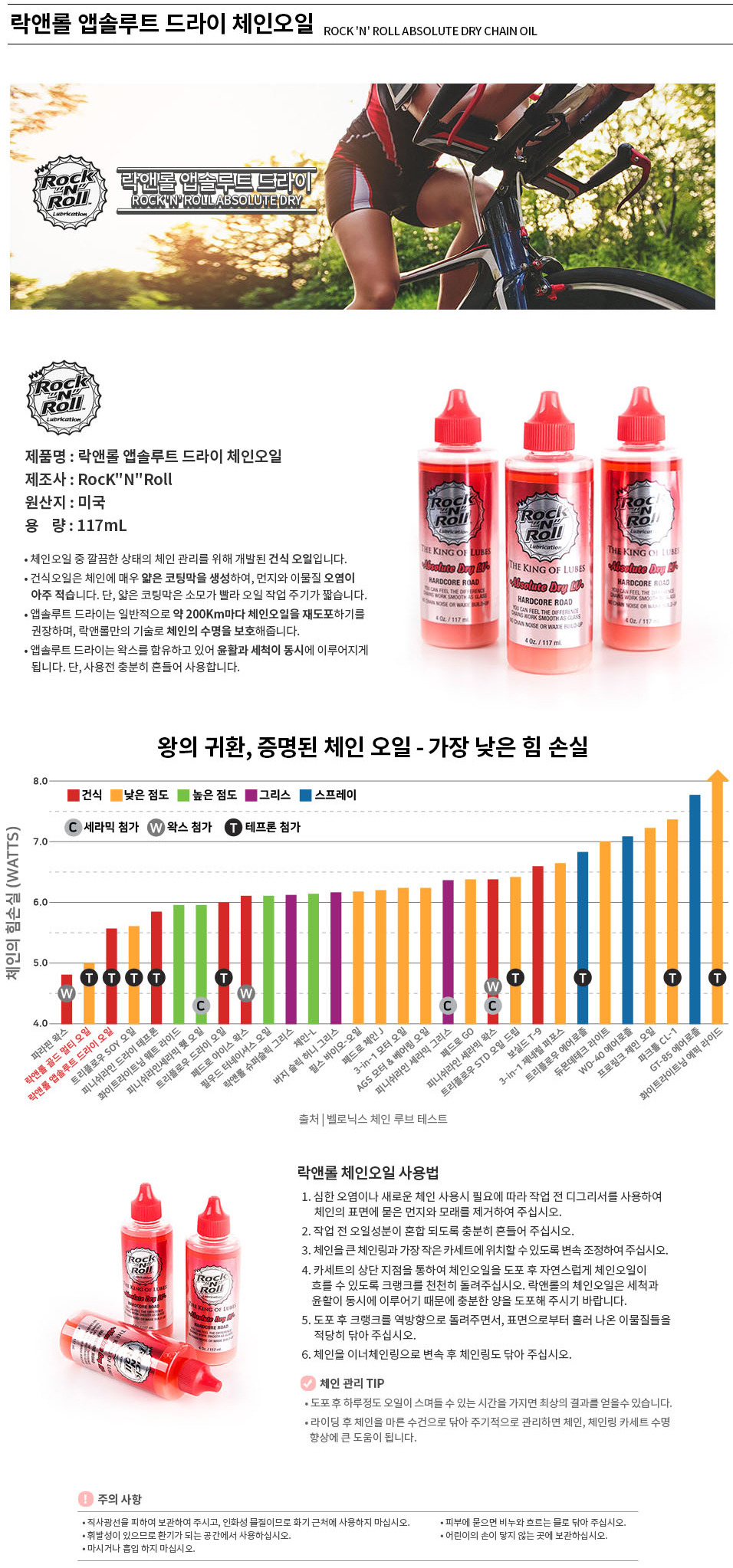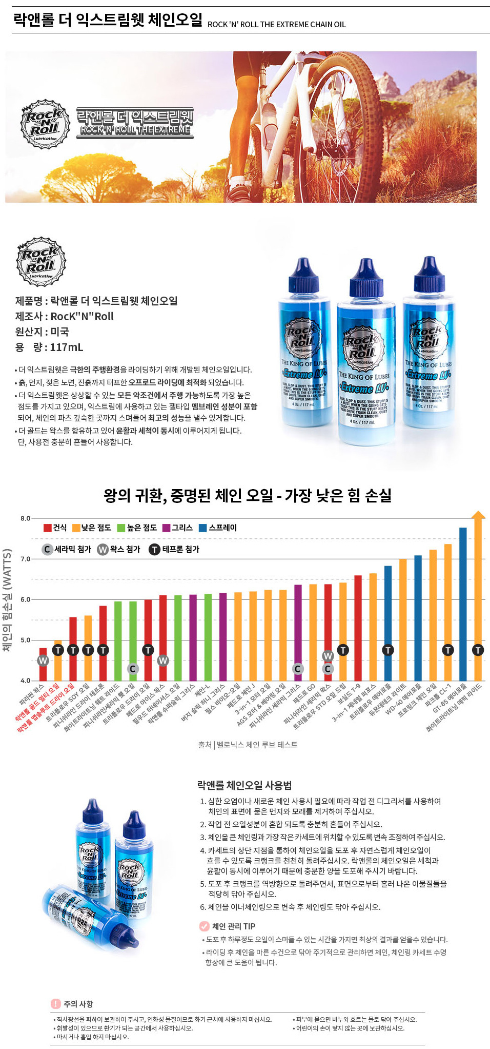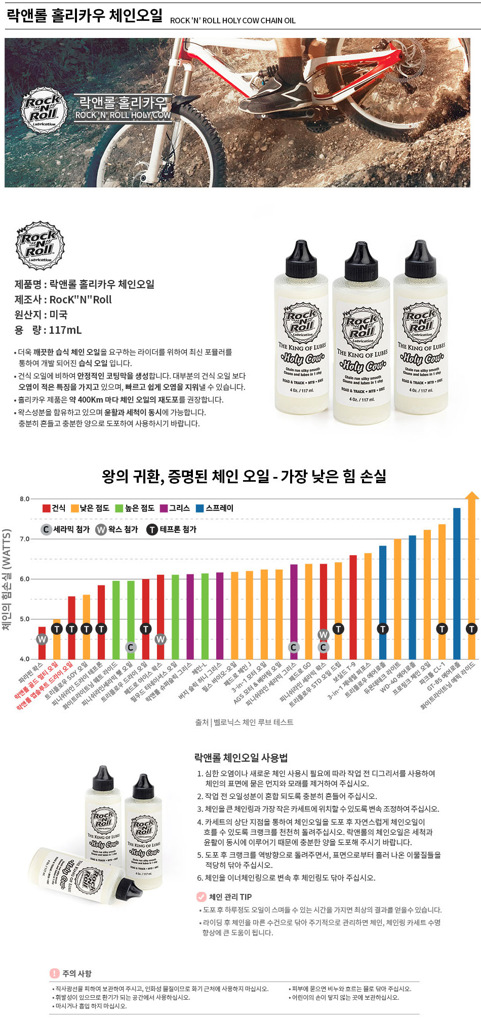 설 명 : 최신 포뮬러 성분으로 깨끗한 습식 체인오일에 최적화