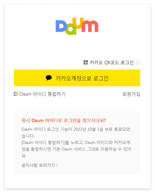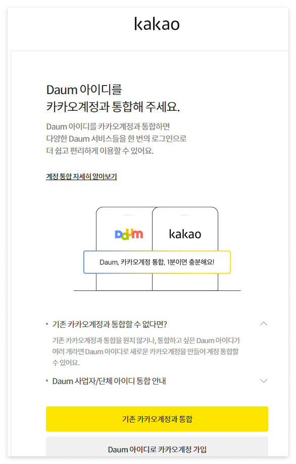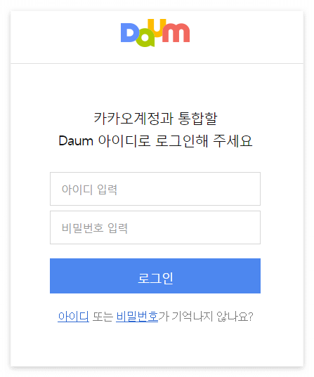 아직 통합하지 않으신 분은 Daum 아이디 통합하기를 누르세요.
