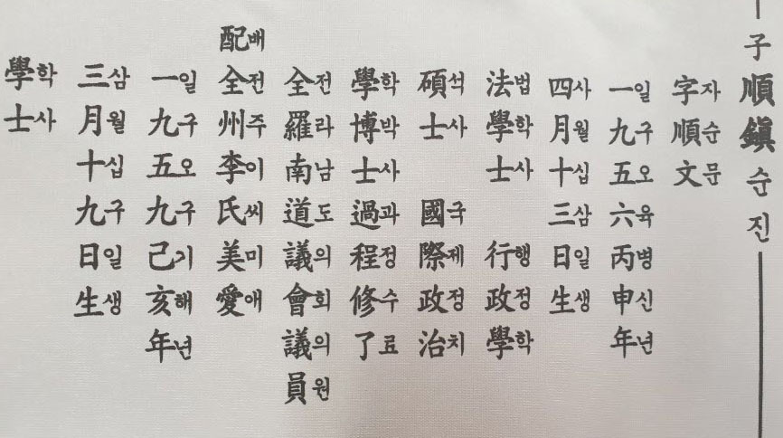 (아버지의 몇째아들이고 형제들은 누구누구가 있는지 표시합니다.)