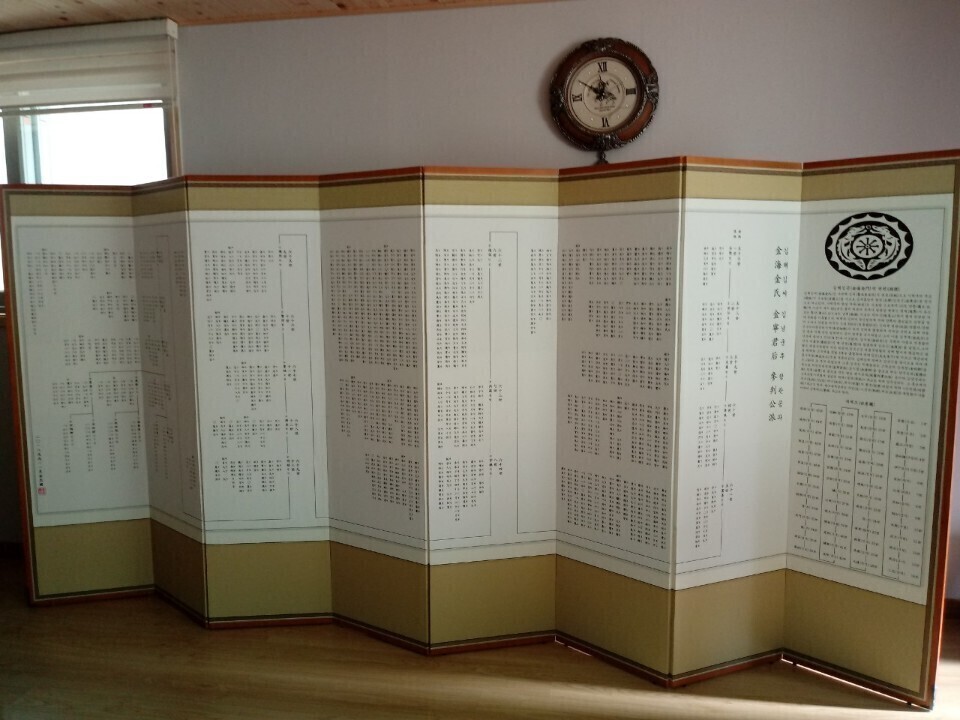 병풍족보는 다섯 살만 되어도 자기 이름을 찾아볼수 있도록 하여 자신의 이름 등제를 신기하게 여기도록 합니다.