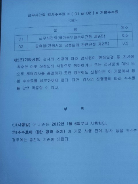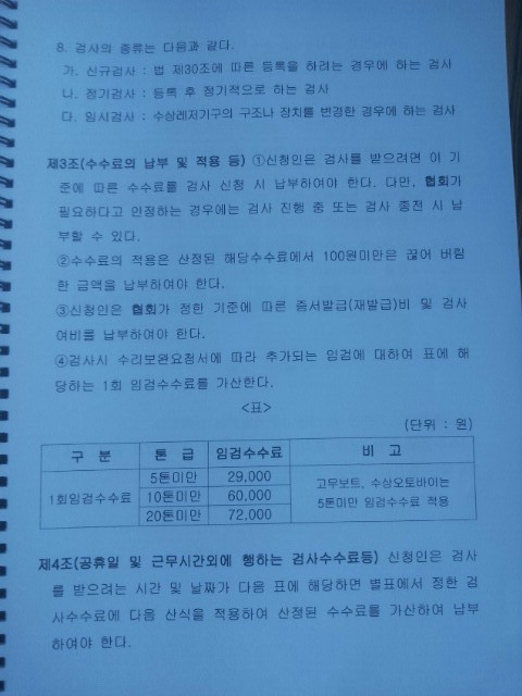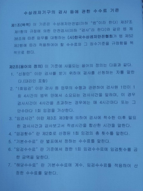 알아야겠다는 생각으로 안전협회에 연락하여, 이에 관한 수수료기준 규정을 협회로 부탁하여 전송받았습니다.