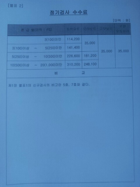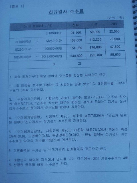 작성자김바다 작성자 본인 여부 작성자 작성시간 14.05.16 지금 전화해 알아보니 신규검사와 정규검사를 다 받는거라 정규검사비도 내야하고 또 정규검사비에 5조 5항의 계측0.6, 도면0.8 복원성에 0.3 배를 곱해서 플러스 해야 한답니다. 그래서 맞을거랍니다 ㅋㅋㅋ. 그러나 이번 공부를 해보니 일단 너무 비싸단 생각입니다. 그리고 문제점들이 한둘 보입니다. 왜 같은 수상레저기구인데 모터보트보다 요트는 검사비용이 2배나 비싼가? 에대하여 강한 의구심이 들었습니다. 이건 중요한 불합리성 규정입니다. 더 공부해보겠습니다.