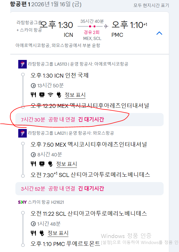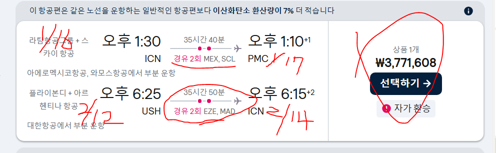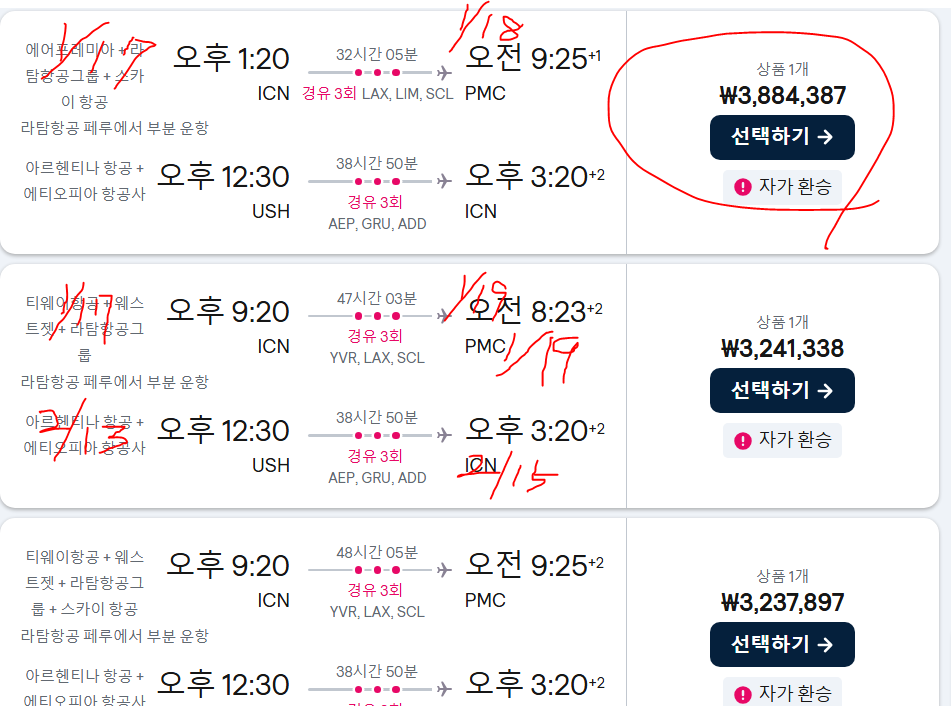 하루 더땡겨 1월16일 출발하면 이것도 괜찮고. 경유가 1씩 줄어. 낫긴 이게 제일 낫네.