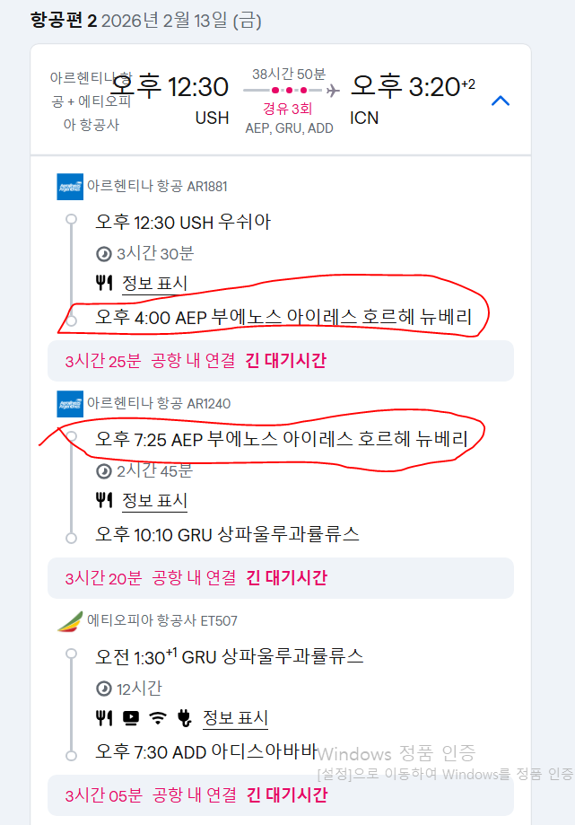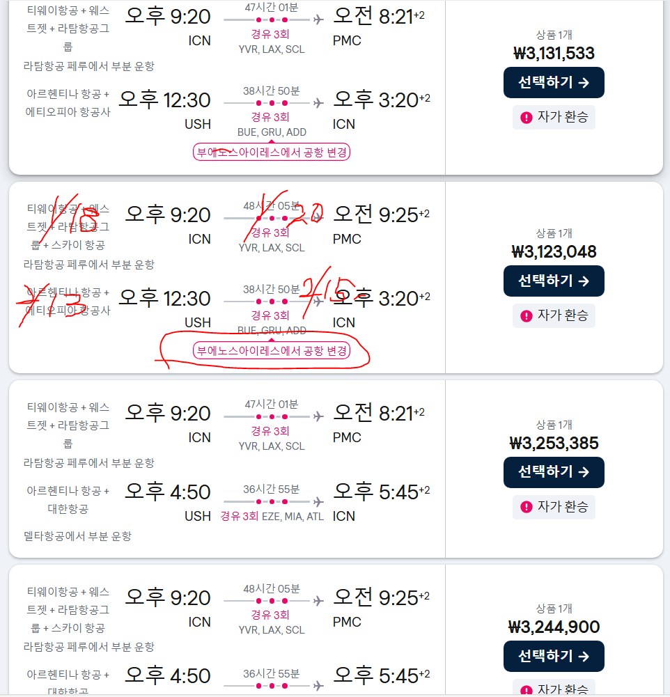 또 돌아오는길 아르헨티나 부에노스에이레스에서 공항변경이라는데 더 알아봐야겠네. 이거 공항명이 부에노스에이레스 호르헤 뉴베리라고 똑 같아서 그냥 그공항에서 바꿔타면 되는거로 보이는데. 물어보면 되것지. 공항을 바꿔야 한다면 신경바짝, 머리털