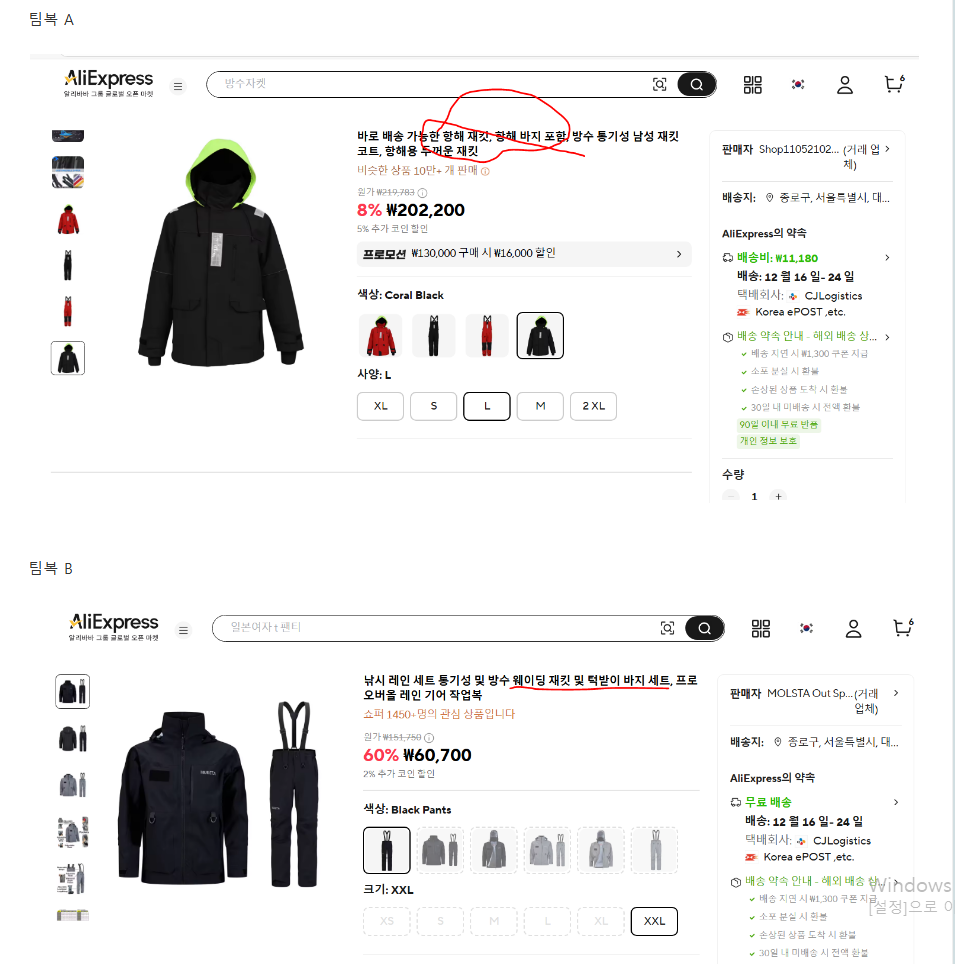 팀복 A,B중 개인선택사항. - 각자 알리에서 개인구매해야함. 단체로 사면 관세 붙어 안됨.