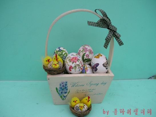 부활절을 맞아 달걀을 꾸며 작은 바구니에 코디하여 담아보았답니다.