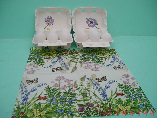 달걀에 냅킨공예로 꾸밀려면 냅킨과 마드파지(접착제)만 있으면 가능합니다.