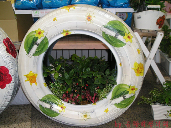 완성된 타이어 실내정원..