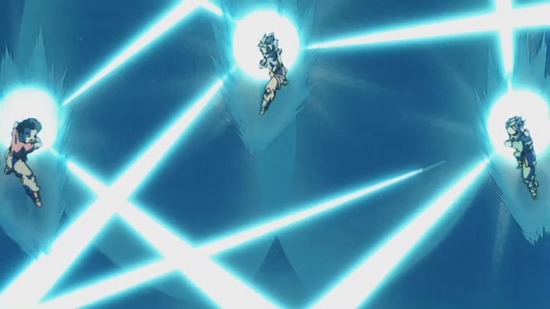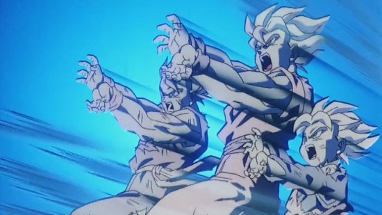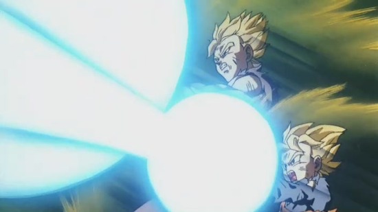 이걸 3부자 카메하메하 라고해야하나? 어쨋든 손씨 3명이 모여서 사용한 카메하메하. 위력은 뭐 별 차이는 없는듯하다만, 결국 전설의 초사이어인 브로리의 공격을 밀어 태양계까지 밀어넣은다음 죽였다. 속도만큼은 엄청난듯하다.