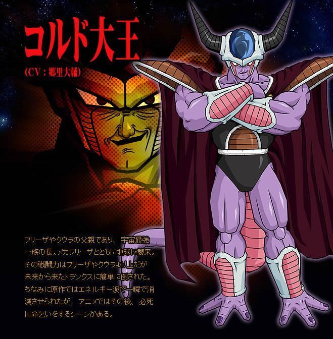 콜드대왕도 지구에 내려온 모습은 첫번째 변신상태라는것을 나타냄(같은 일족이기때문에 모습도 흡사함 즉 첫번째 변신단계는 어떻고 세번째변신계는 대표 프리저같은 느낌)