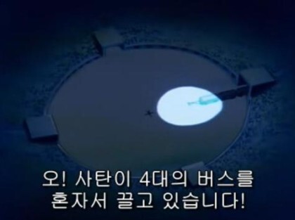 버스 4대 끌기
