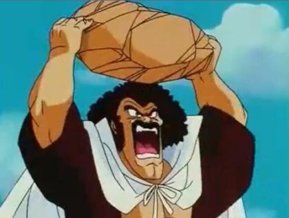 땅에 박힌 바위 한 손으로 뽑아내서 박치기로 부수기