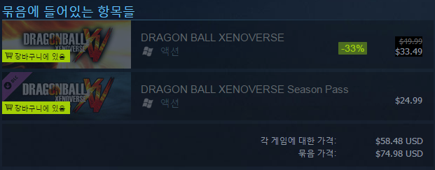 할인받았을 때 제노버스에 시즌 패스까지 구매 시에 58.48달러 한화로 6만 5,339.70원에 구매할 수가 있게 되었습니다.