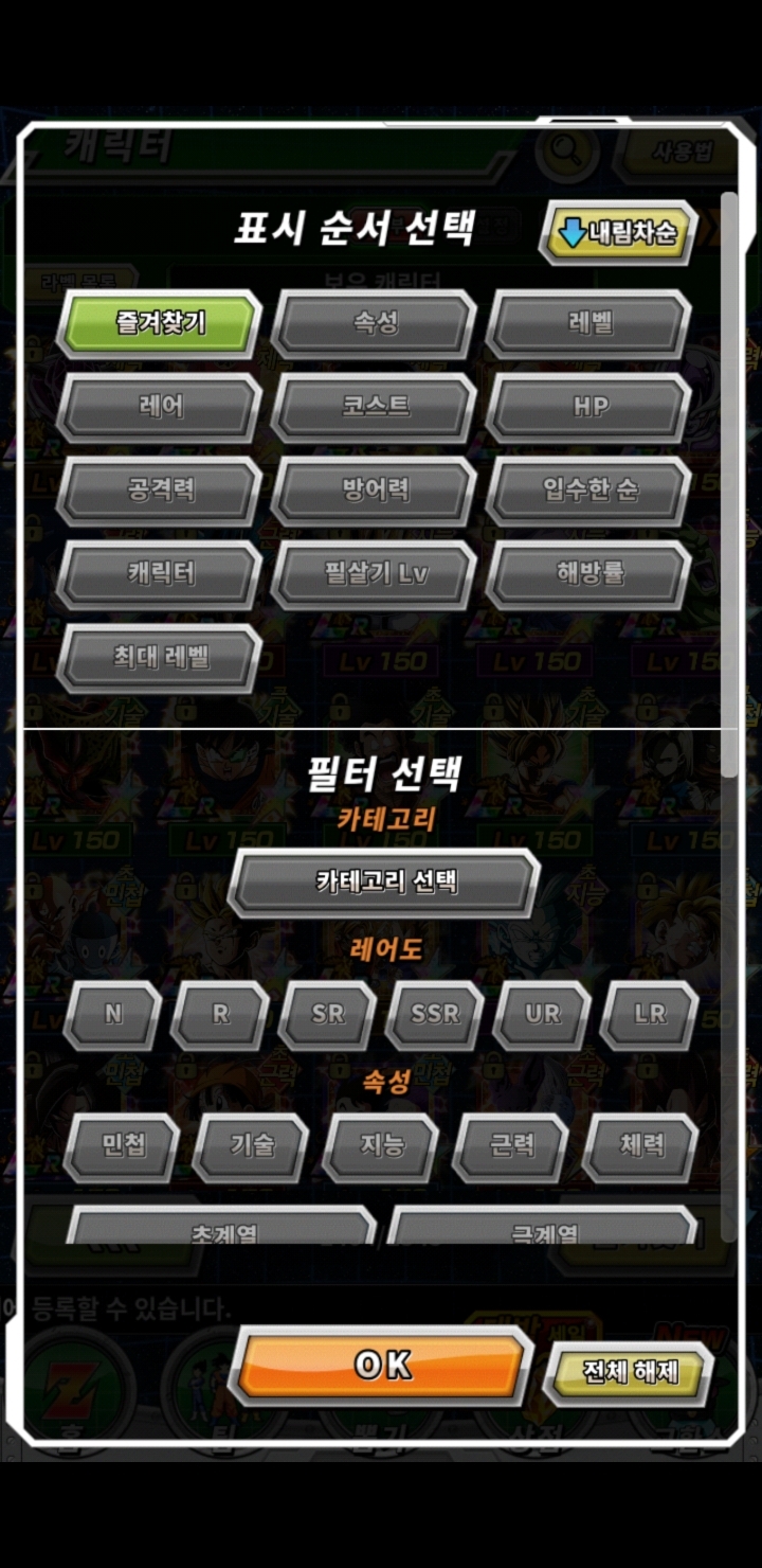 코스트 -> 해방률 -> 레어 -> 즐겨찾기