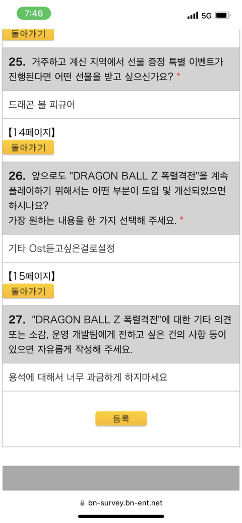 답댓글 작성자드래곤볼히어로즈 작성자 본인 여부 작성자 작성시간 22.08.16 https://bn-survey.bn-ent.net/Q/sp/ko/000000dbzdokkanb7k/enq1/